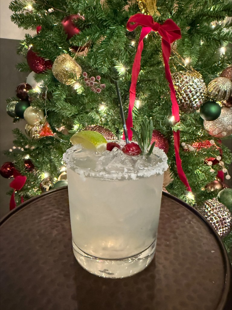 Tequila, Fresh Lime Juice, Cointreau, White Cranberry Juice, Rosemary Infused Simple