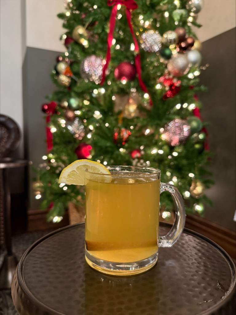 Hot Water, Irish Whiskey, Honey, Lemon Juice, Garnished w Cinnamon Stick